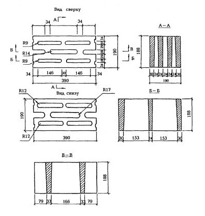 Камни для кладки стен КСР-ПР-ПС 39. Унифицированные изделия, имеющие прямоугольную форму с рядом конструктивных особенностей в виде выступов, углублений и отверстий.