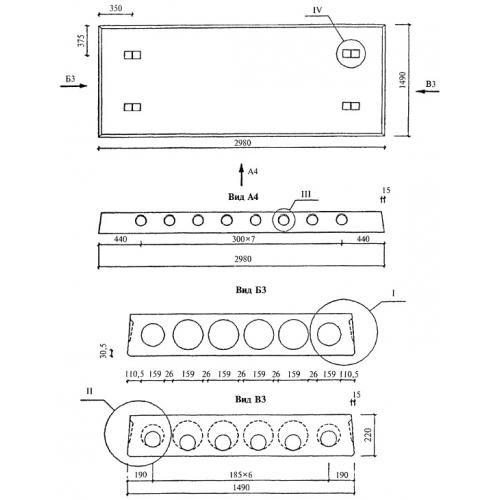 Плиты длиной 2980 мм и шириной 1490 мм с арматурой из стали классов  A-III  и Bp-I из тяжелого бетона.