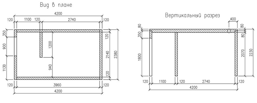 - наружный размер — 4200х2380х2310мм;
